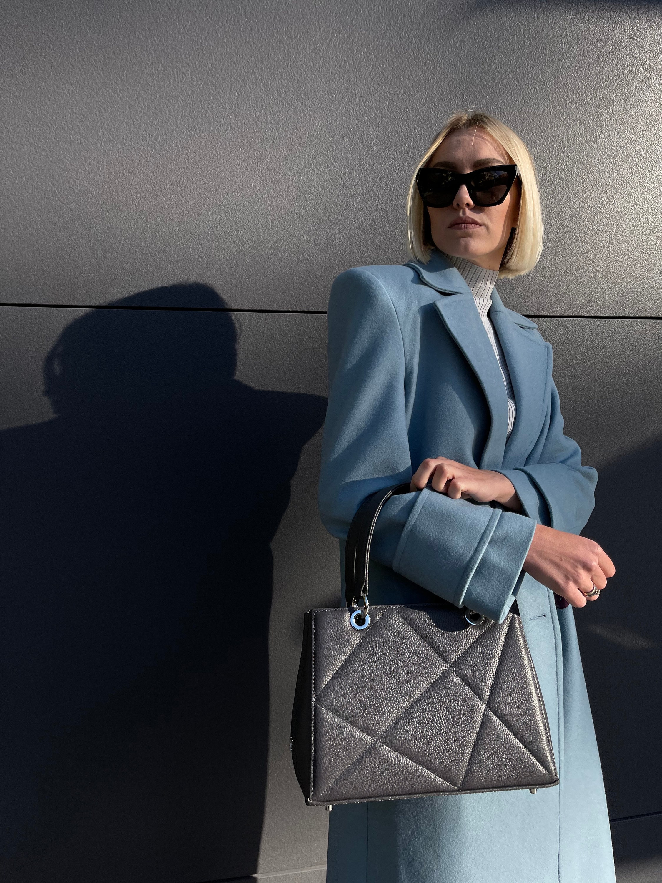 Leather Top Handle Bag, Grey Leather Handbag Top Handle, Women's Leather Bag KF-4702